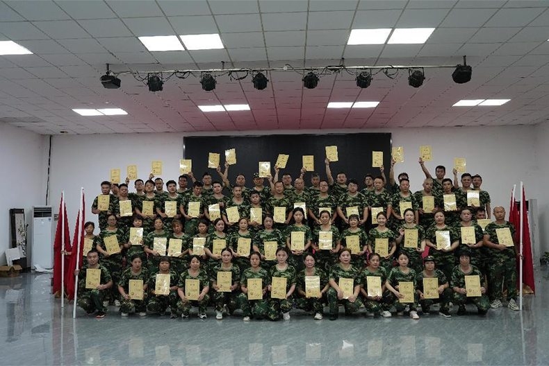 上午的基地回荡着铿锵的口号声,"精英队""雄鹰队""优胜队”、“龙腾队"等4支队伍在破冰组队中诞生。各队旗绘制、战术口号设计,团队舞蹈彩排演练,迅速点燃团队归属感。